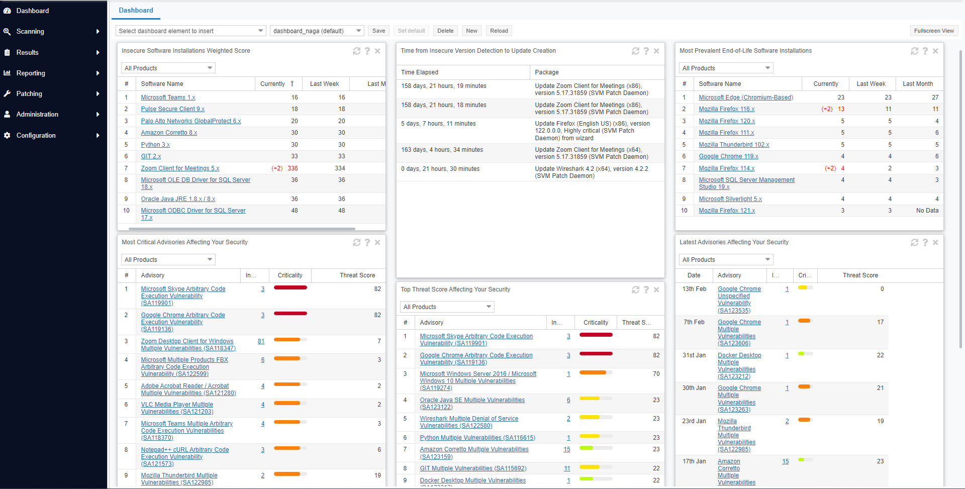 Software Vulnerability Manager (Cloud Edition) Help LibraryAppendix D - Threat IntelligenceThreat Score LocationsDashboard Threat ScoreDashboard Threat Score The following image is an example of the Dashboard Threat Score.