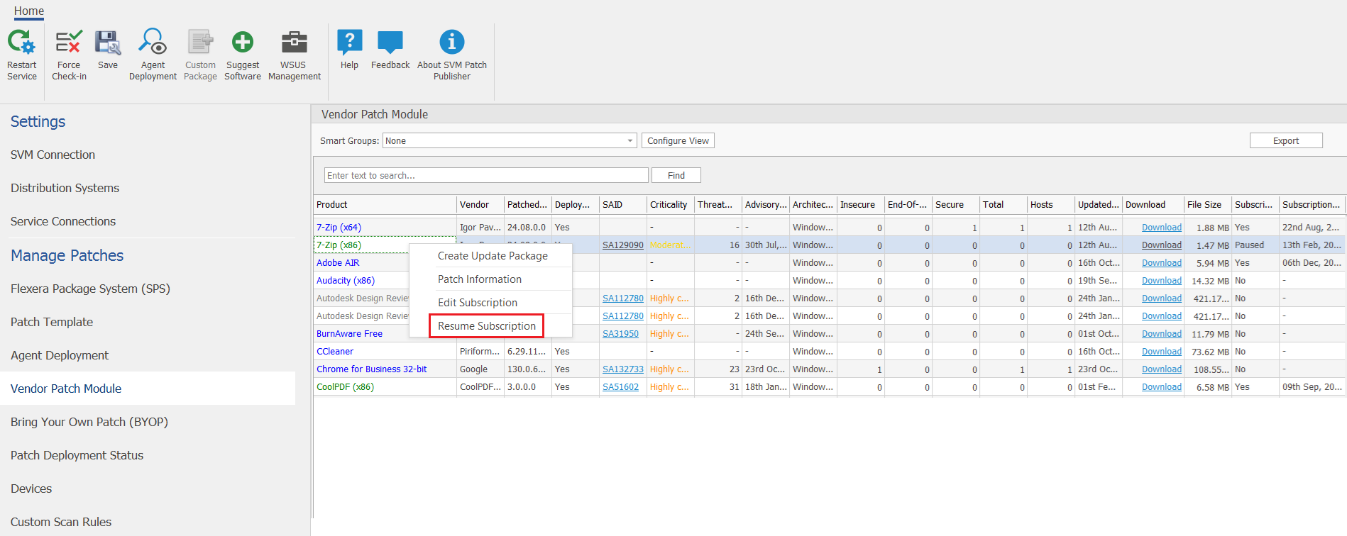 To use this option, navigate to Manage Patches >> Vendor Patch Module or Manage Patches >> Patch Template.
