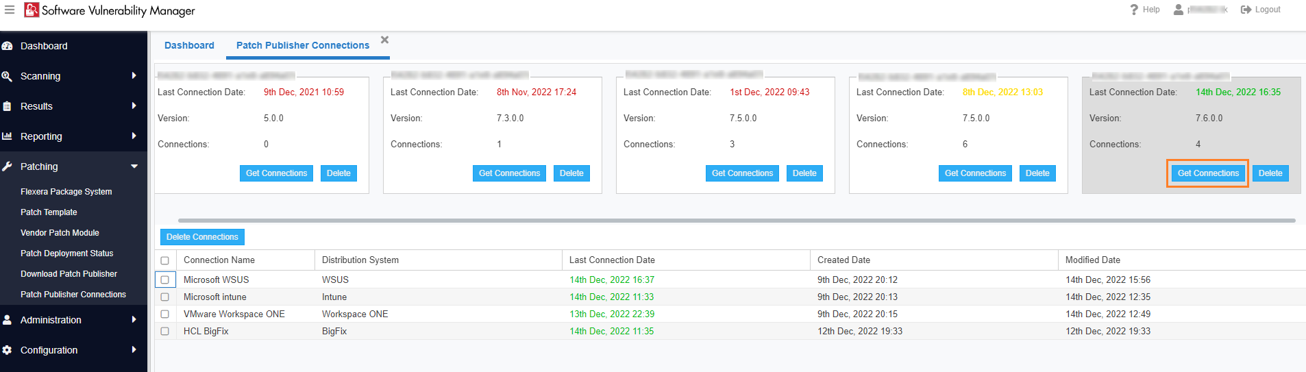Select the desired patch publisher and click on Get Connections to get the connection details.