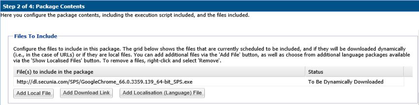 Confirm the updated patched version file appears under Files to Include in Step 2 of 4 of the Flexera SPS wizard and click Next.