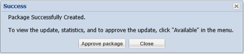 The Attempting to Publish Package - Please Wait status appears. After the WSUS package is successfully created, a Success pop-up window appears. Click Approve package.