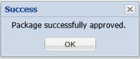 When the Success - Package successfully approved pop-up window appears, click OK.
