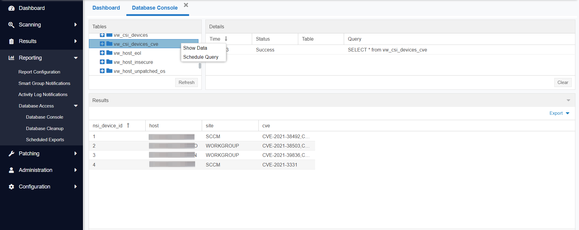 | vw_csi_devices_cve | List of hosts affected by CVE |